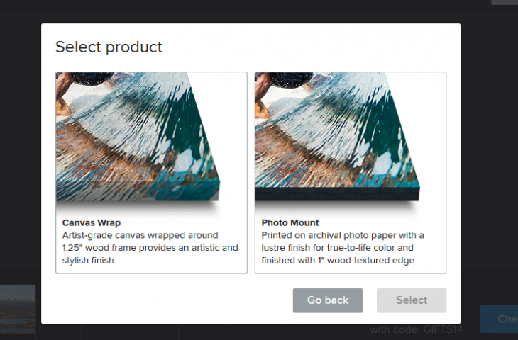 With photos that are suitable, you simply select the canvas or photo mount option.