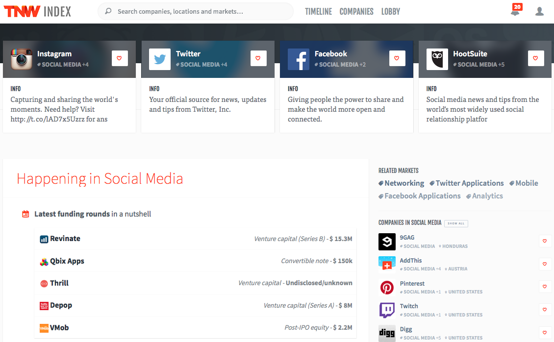 Last month we unveiled our new secret weapon, TNW Index, here on The Next Web. In case you missed it, Index is our social database that can be used to track the news and activity of companies, cities, and markets that you are interested in. What started as a tool for our editors now offers everything you need to stay up-to-date – whether you’re a founder, investor, blogger or just a startup enthusiast.
