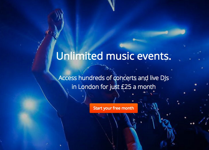 It’s a newly launched website in the UK that gives you access to unlimited gigs, club nights, exclusive parties, raves, day festivals and events in London for a monthly fee of £25.