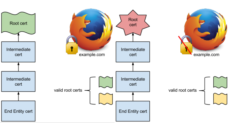 This means pinning can be used to protect Firefox users from man-in-the-middle-attacks and rogue certificate authorities. Whether a CA mis-issues a certificate, or when the root cert for a pinned site does not match one of the known good CAs, Firefox will reject the connection.