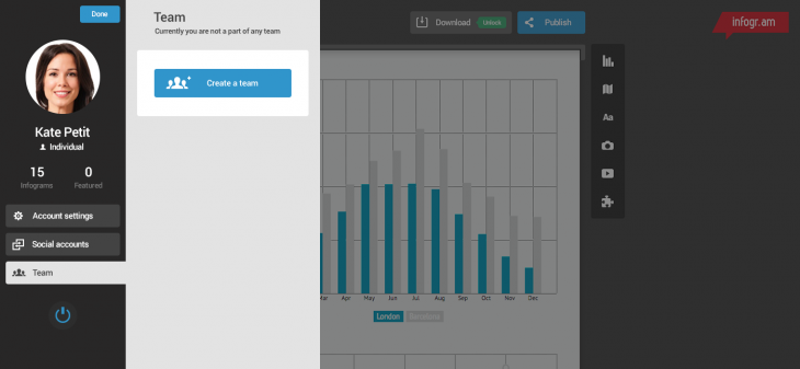 Those who sign up as teams can tap into a shared history of all the infographics they’ve created, while multiple ‘seats’ on the same shared accounts means that large companies in particular may benefit from reduced pricing with the more users that join.