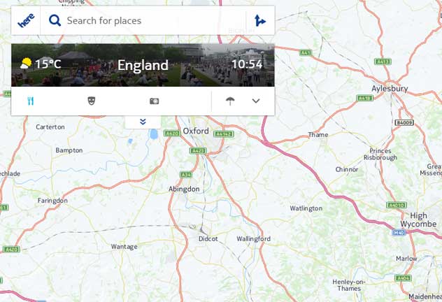 This includes a new ‘hero area’ which provides context-specific information such as time and weather, based on the location you’re looking at on the map (this defaults to your current position).