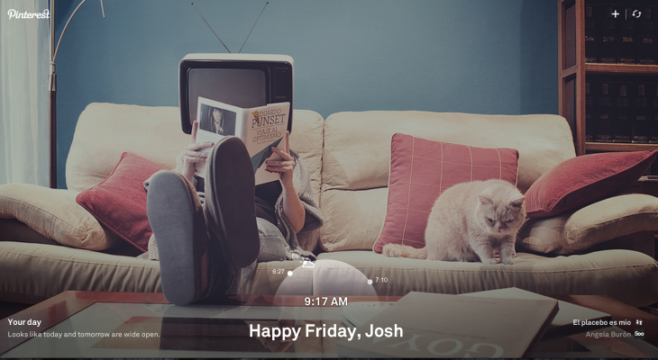 You can, of course, click to pin the photo to your own board if you like. The page also includes calendar and weather data.