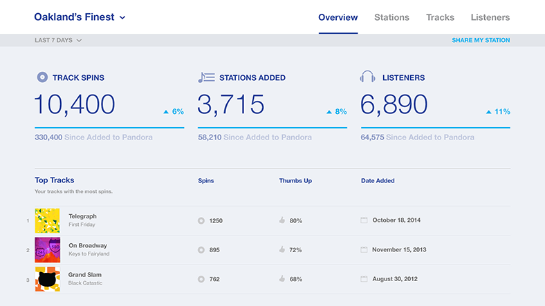 With AMP (artist marketing platform), Pandora says it’s looking to ‘eliminate the guesswork’ by letting artists know which songs are performing well (e.g. track-spin counts and which are garnering the most ‘thumbs-up’). This could be used to help inform future singles or which tracks to perform live.