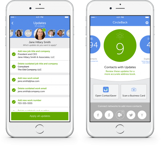 CircleBack is the world’s first artificially intelligent contact manager. Tucked behind the simple interface is an AI engine that processes billions of points of information every day to determine if a piece of contact information in your address book is accurate.