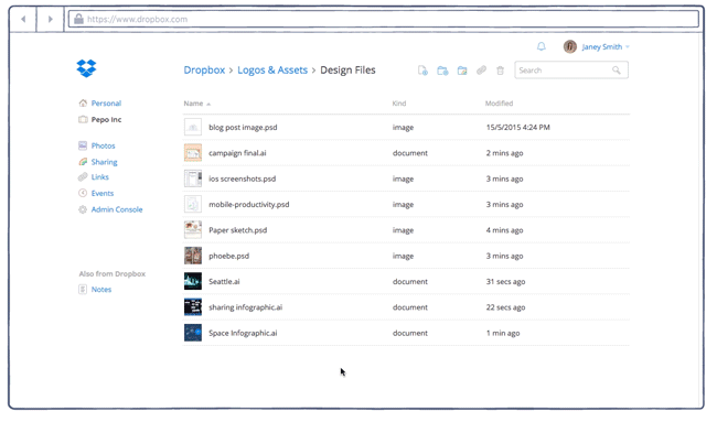 Dropbox says you’ll also be able to view PostScript (.eps) files and see more accurate color matching and higher resolutions in previews of Photoshop (.psd), Illustrator (.ai) and scalable vector graphic (.svg) files in your browser.