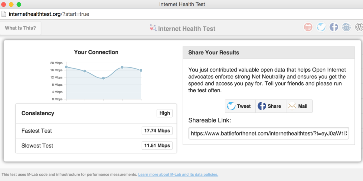 The ‘Internet Health Test‘ by Battle for the Net is an attempt to install a sense of checks and balances for these ISPs by providing a test for Internet users to ensure their speeds aren’t being throttled or otherwise degraded.